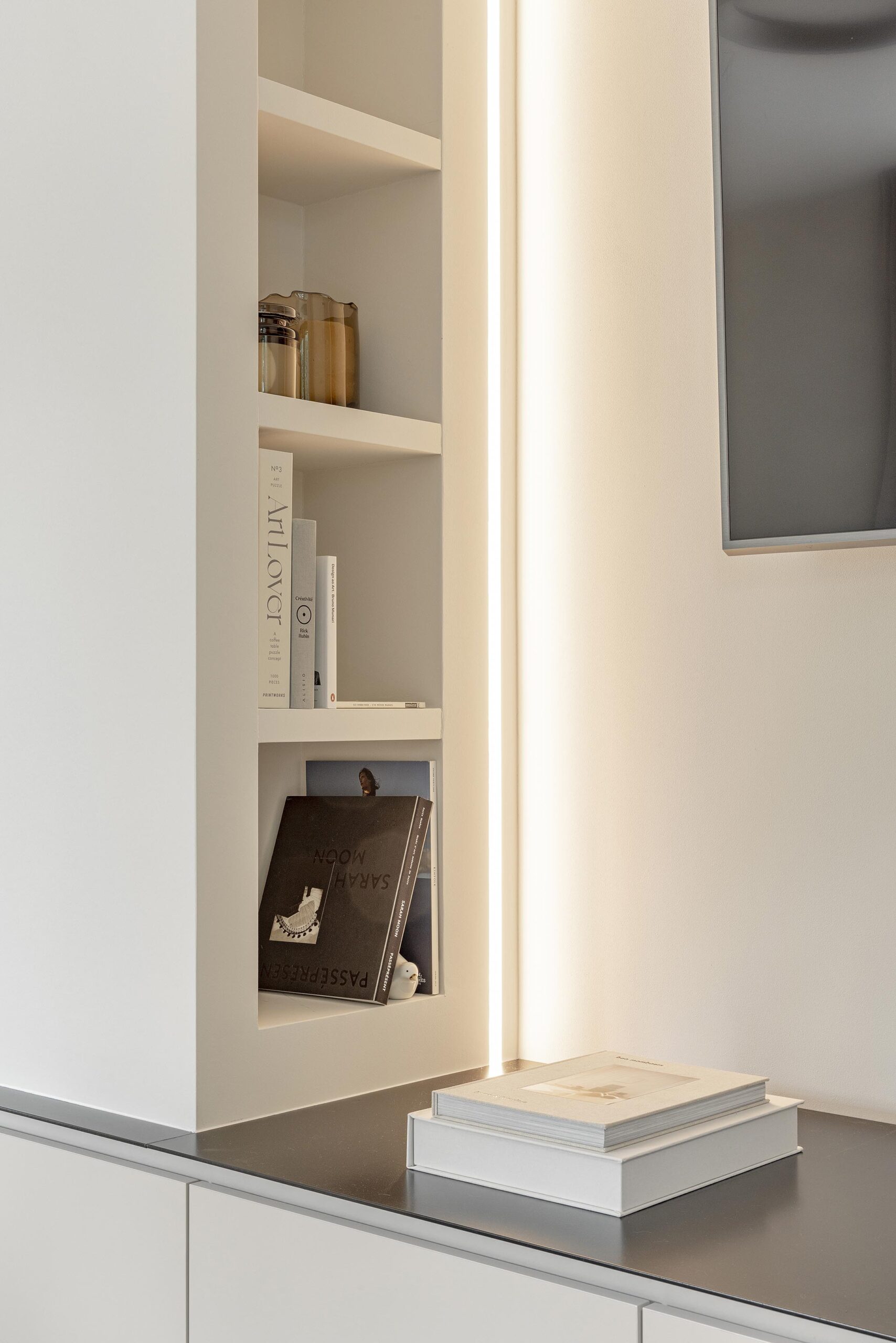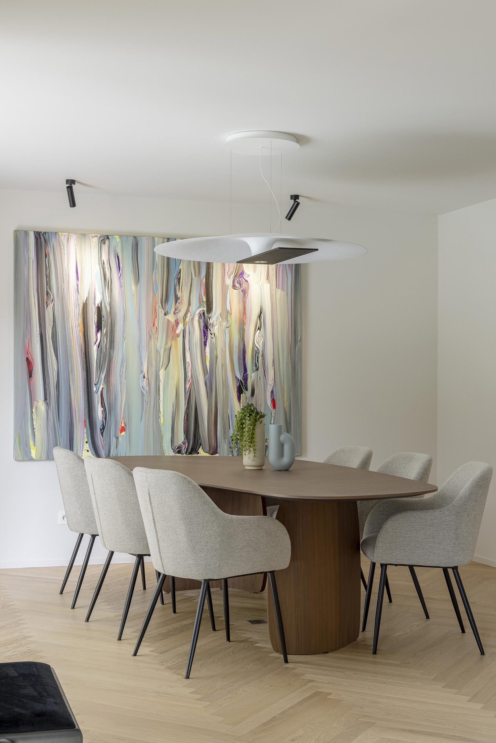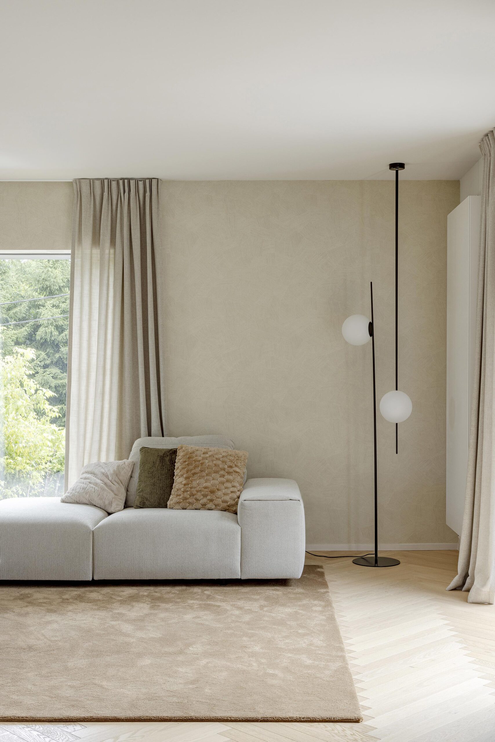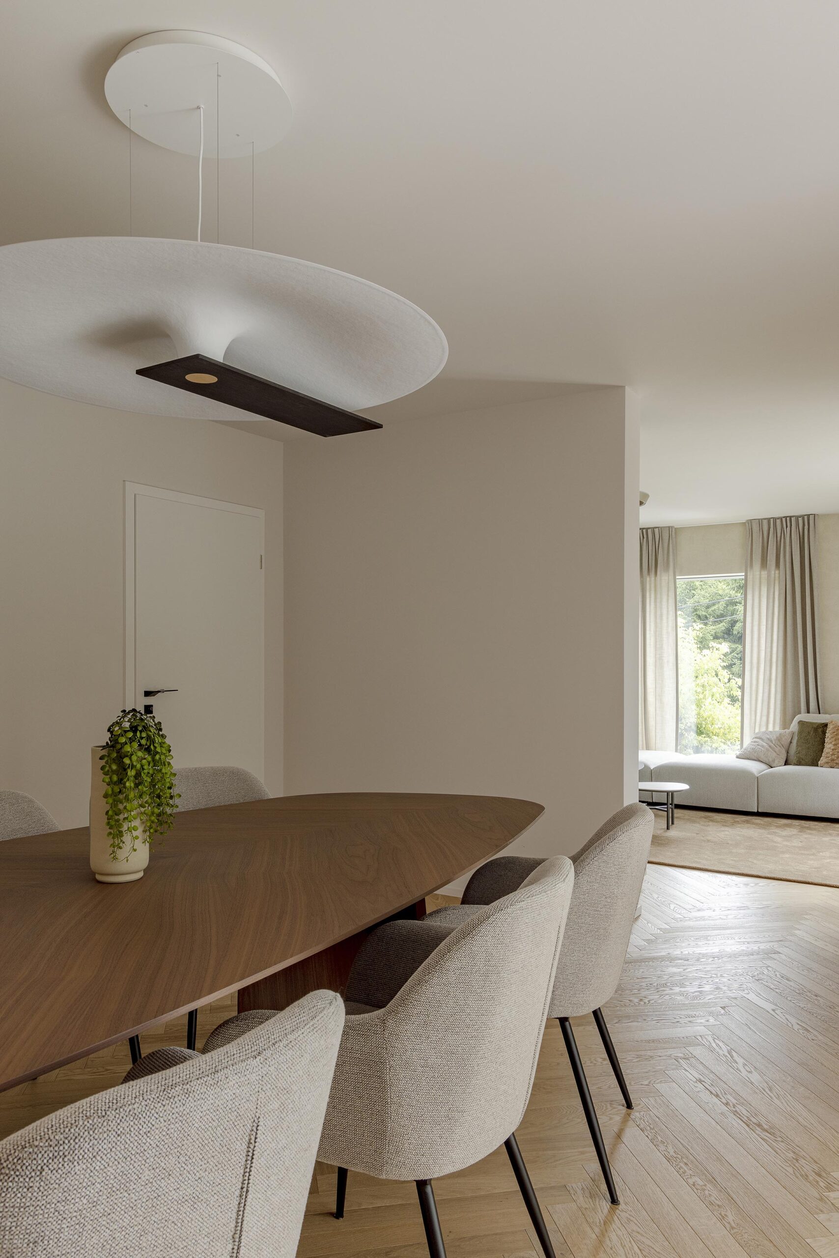 Ce projet d’aménagement de rez-de-chaussée a été entièrement repensé afin d’optimiser chaque espace. Le travail a porté sur l’ensemble des éléments : le revêtement de sol, le mobilier, les créations sur mesure, les habillages de fenêtres ainsi que l’éclairage, pour créer une ambiance harmonieuse et cohérente. L’objectif était d’obtenir un intérieur contemporain et lumineux, tout en offrant des solutions de rangements optimales, pensées pour le quotidien des occupants.