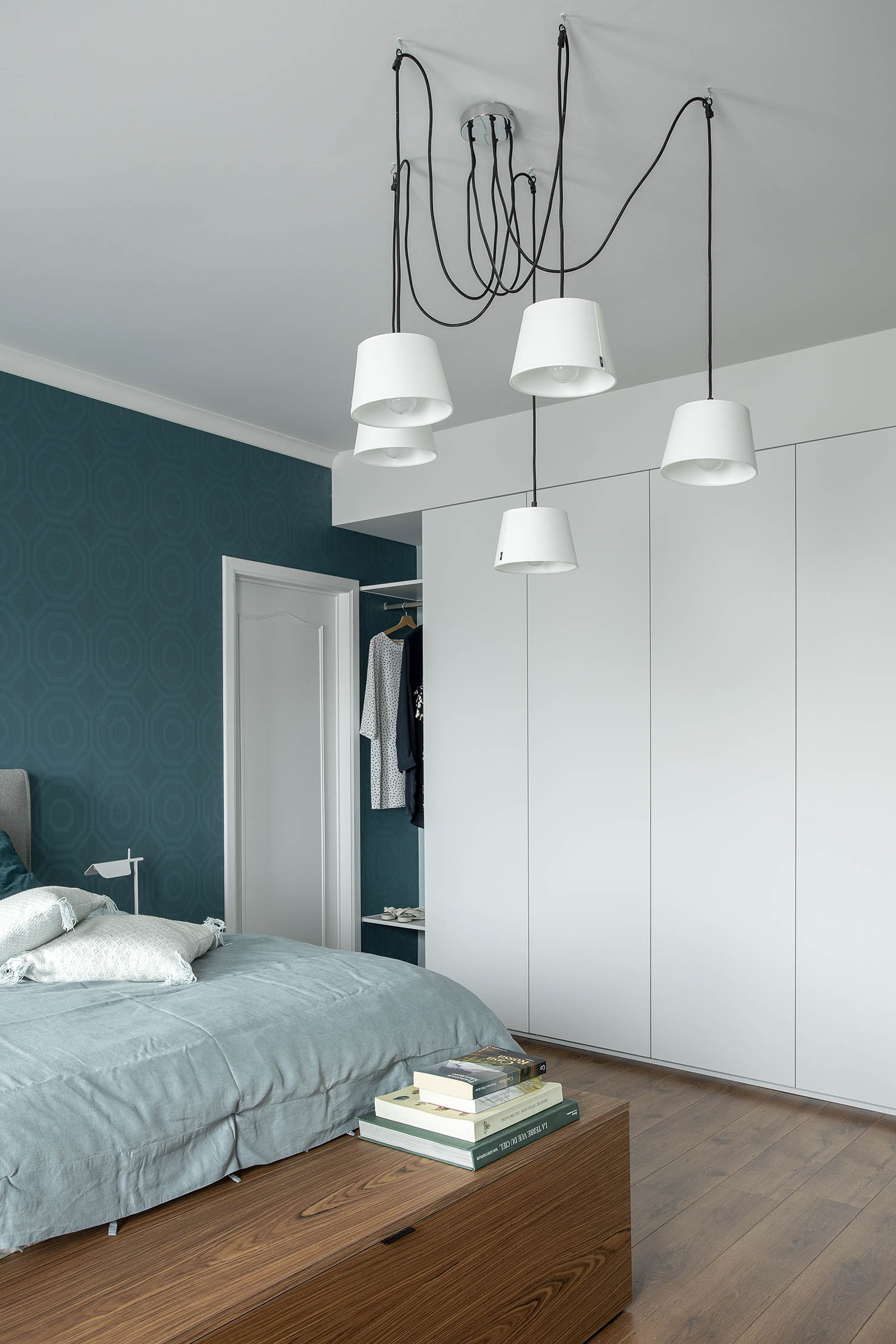 Des souvenirs, un attachement sentimental ou tout simplement un coup de cœur, il existe bien des raisons qui nous lient à des objets dont on ne souhaite pas se séparer. Notre métier demande de l’agilité et de la créativité pour harmoniser « ancien » et « nouveau » et faire naître un ensemble agréable et cohérent, en respectant les souhaits du client. Pour ce chantier, il nous a été demandé de conserver le papier peint bleu turquoise, le plancher et la suspension.