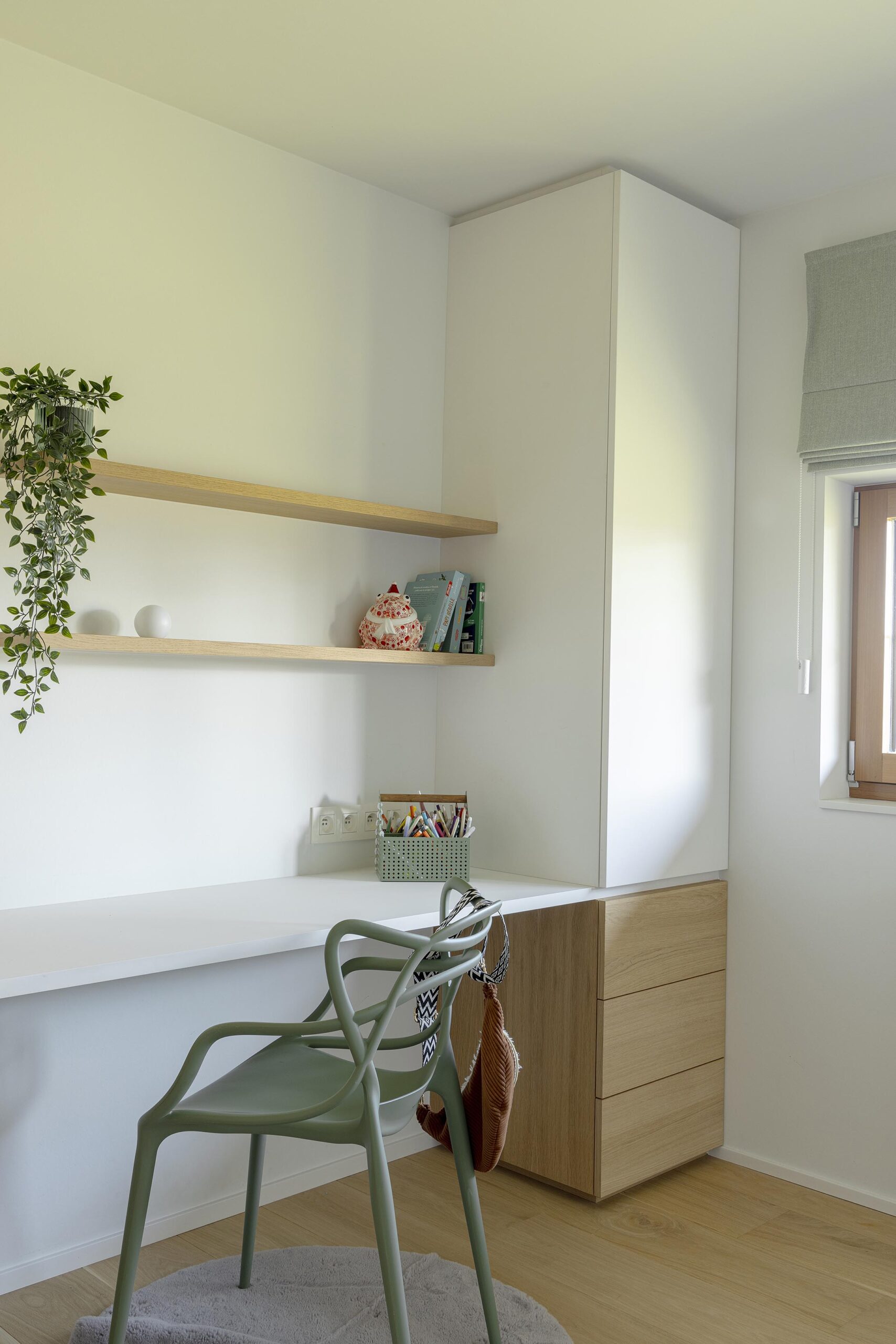 Cette chambre de jeune fille a été entièrement pensée pour allier confort et praticité. Avec son mobilier sur mesure, elle offre des espaces bien définis et des rangements optimisés. Dès l’entrée, un coin banquette avec rangement pour les chaussures apporte une touche fonctionnelle et organisée. L’agencement a été conçu pour créer une atmosphère chaleureuse et harmonieuse, propice au bien-être au quotidien.
