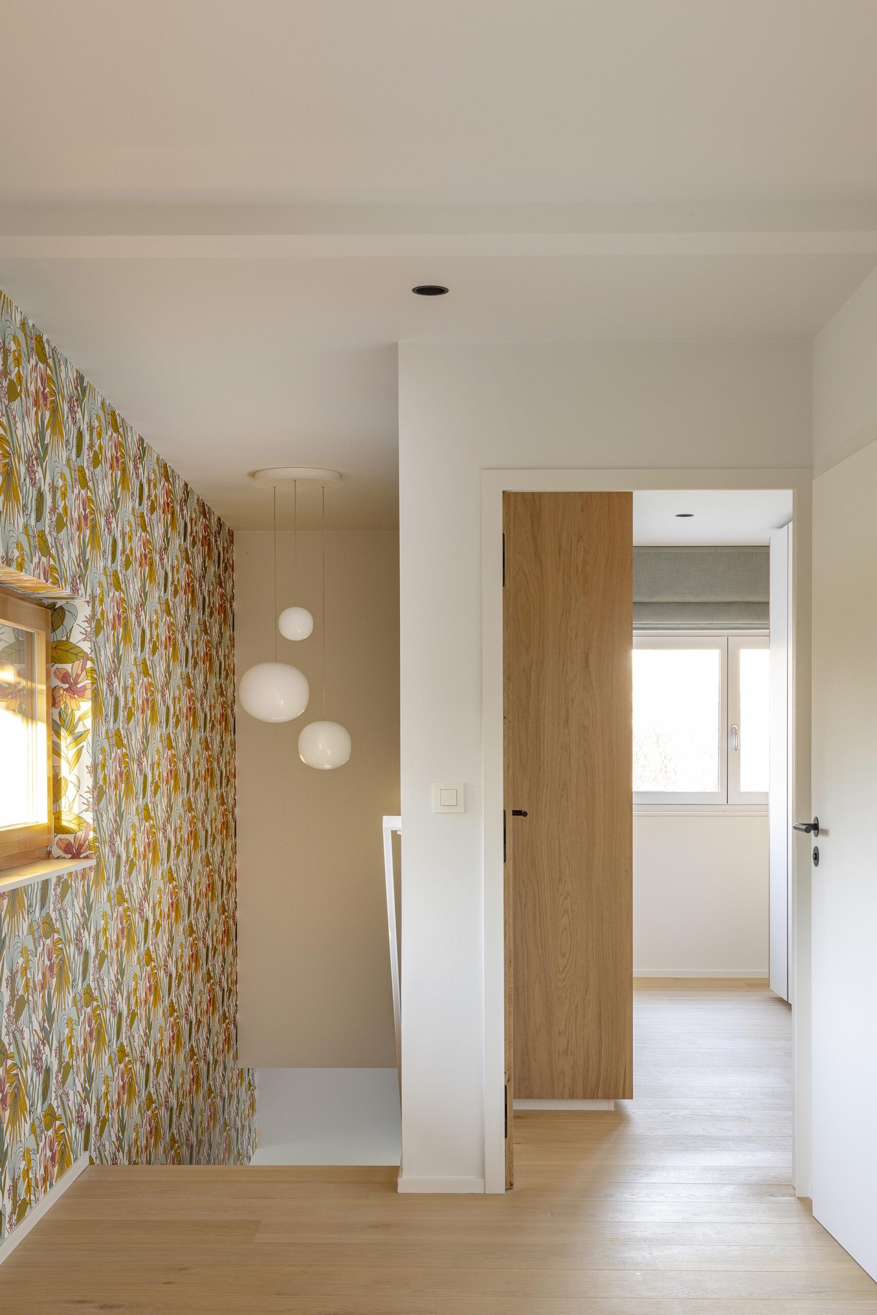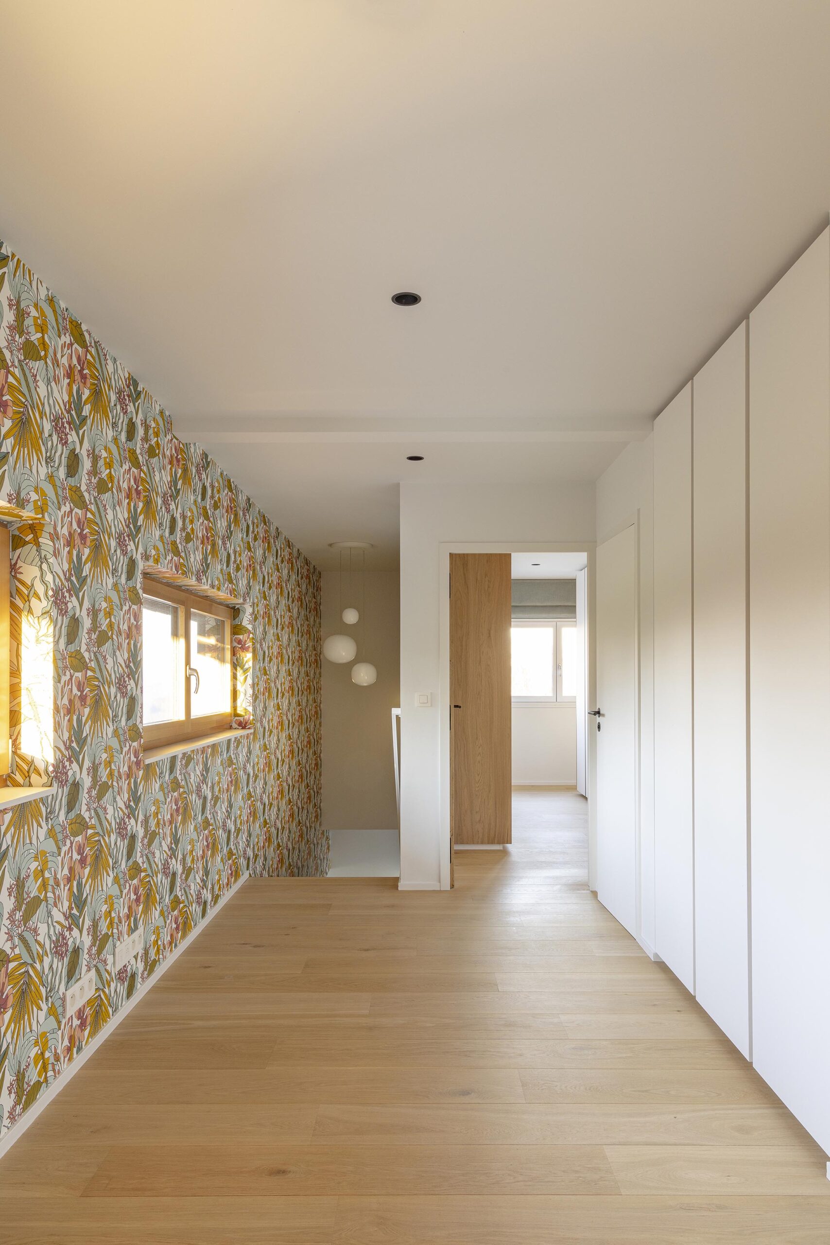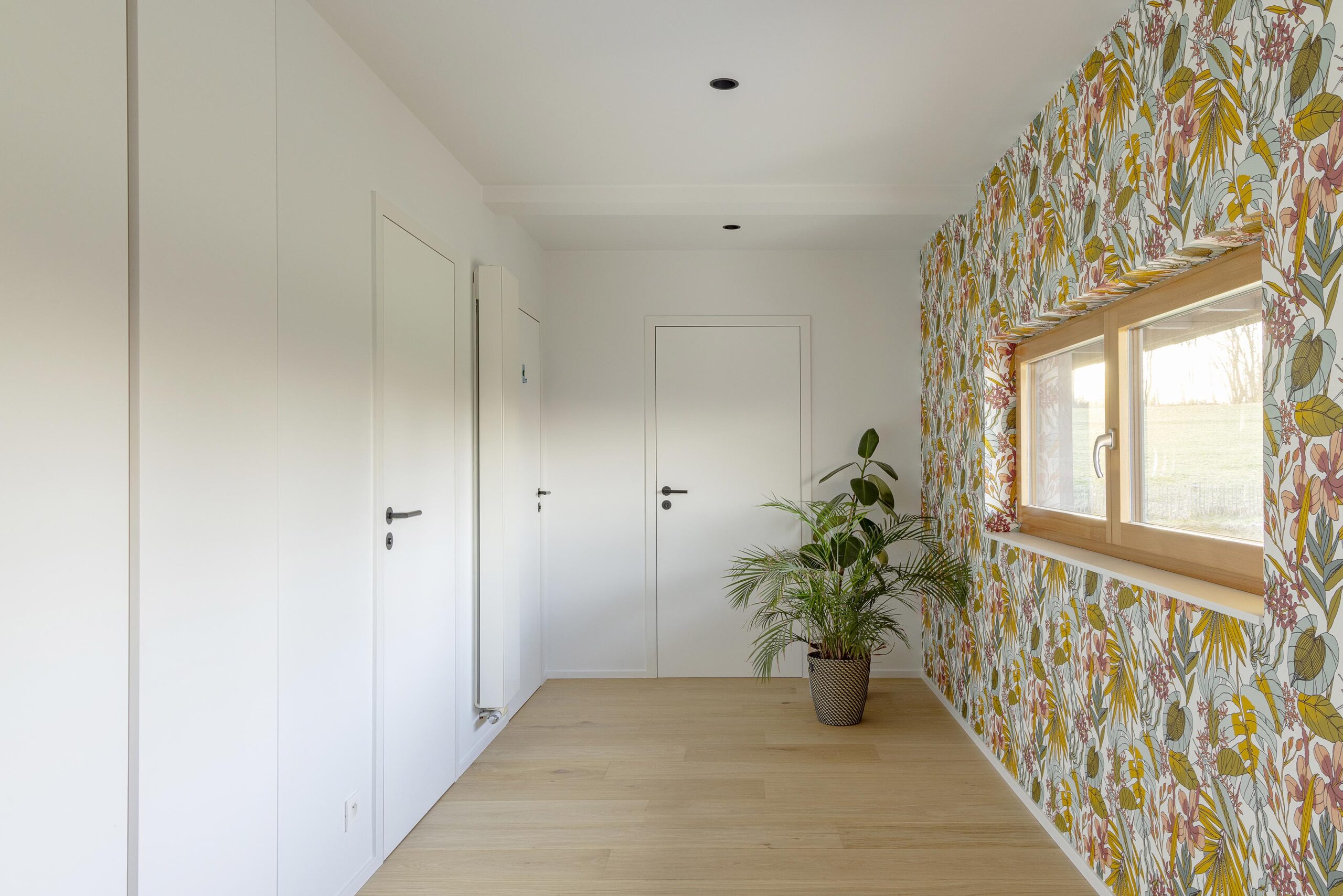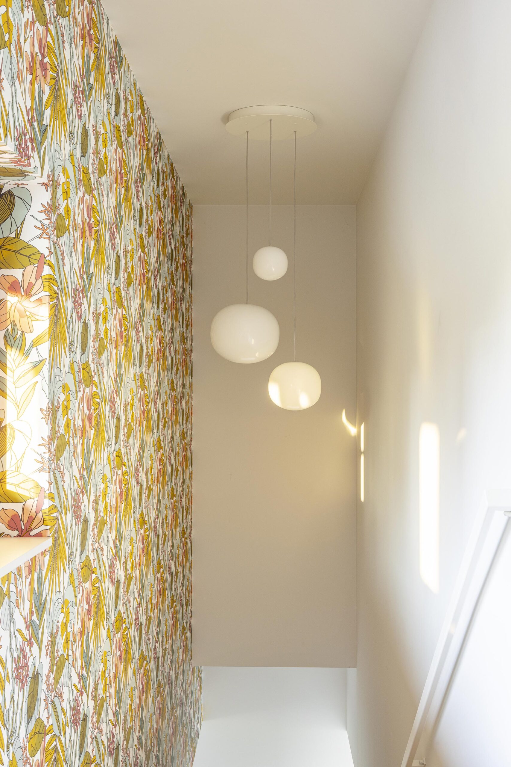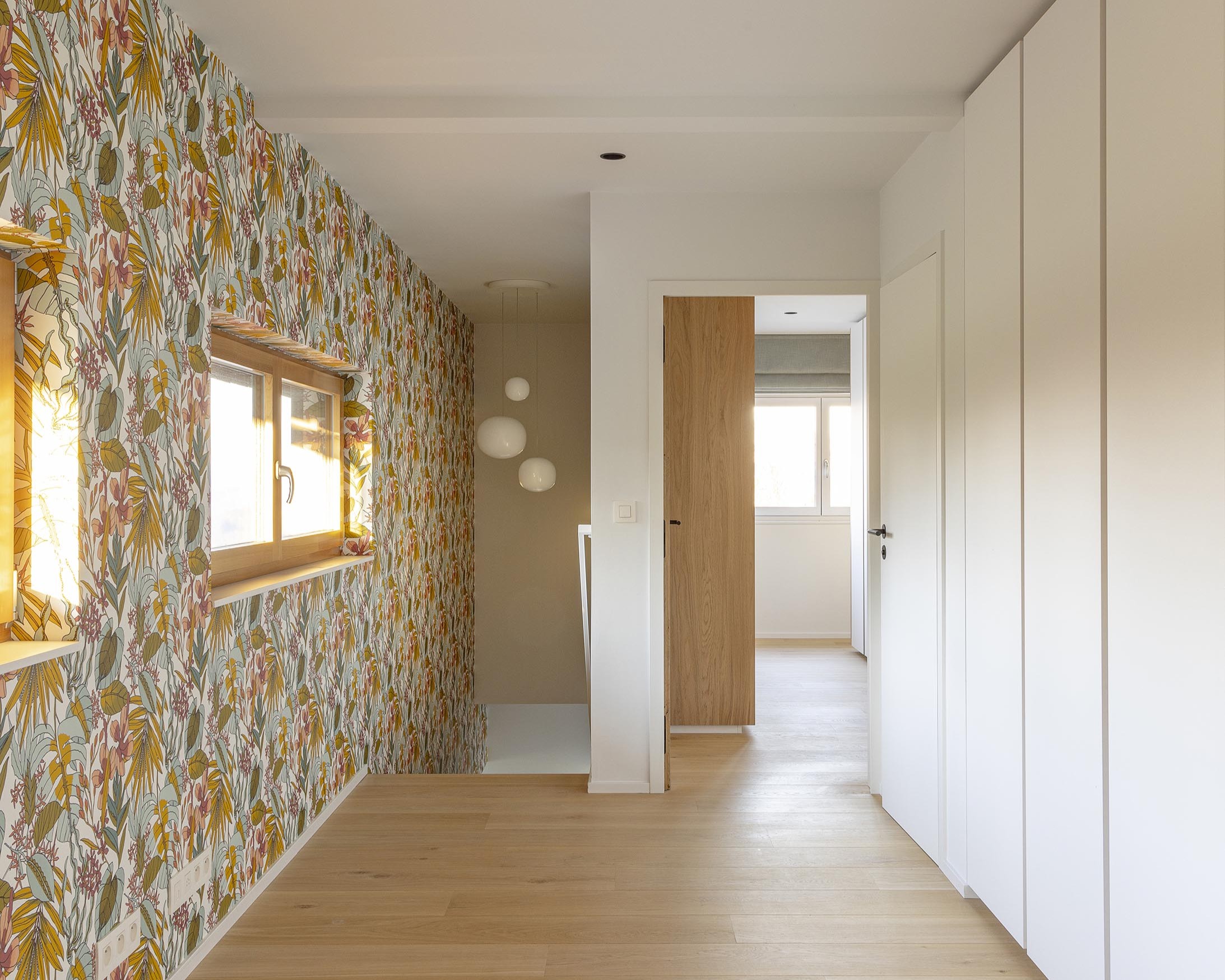 Souvent négligé, le hall de nuit mérite pourtant toute notre attention. Lieu de passage où l’on peut oser et exprimer sa créativité, il devient ici un véritable atout. Nos clients ont choisi d’affirmer leur style avec un superbe papier peint fleuri, apportant une touche chaleureuse et pleine de caractère. Dans ce hall, l’éclairage a été soigneusement étudié pour un rendu harmonieux et fonctionnel.